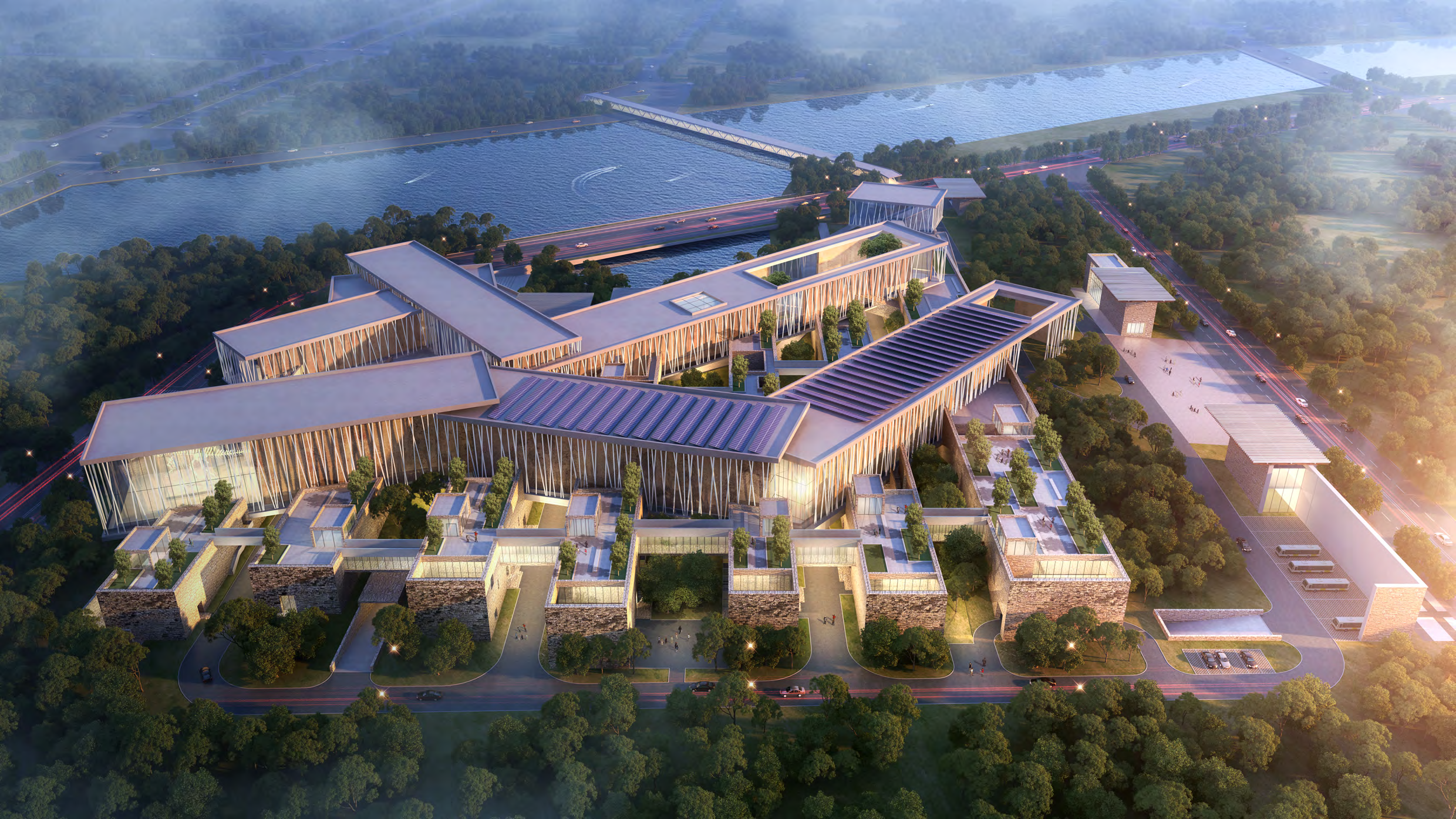 總建筑面積:3.11萬(wàn)㎡ 以北宋《千里江山圖》、《四景山水圖》為藍(lán)本,巧妙融合了宋代建筑特色和現(xiàn)代化建筑元素,呈現(xiàn)出“多元并存”,將自然美與人工美融于一體。 王澍大師作品